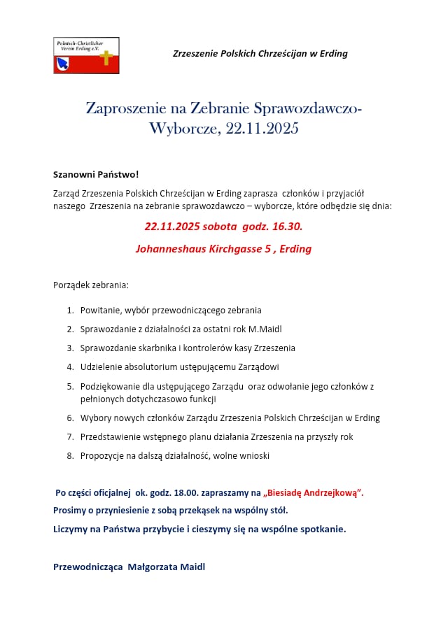 Zrzeszenie Polskich Chrześcijan Erding zwraca się z prośbą i apelem do wszystkich Polek i Polaków, którzy w dniu Święta Zmarłych przebywają w Bawarii.